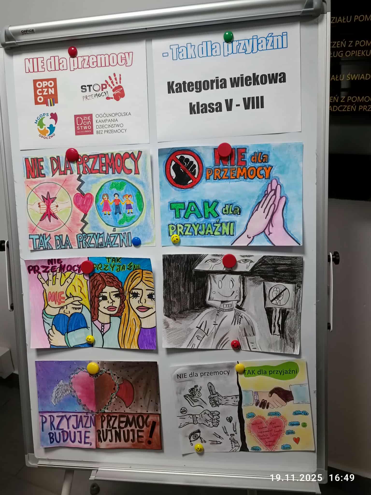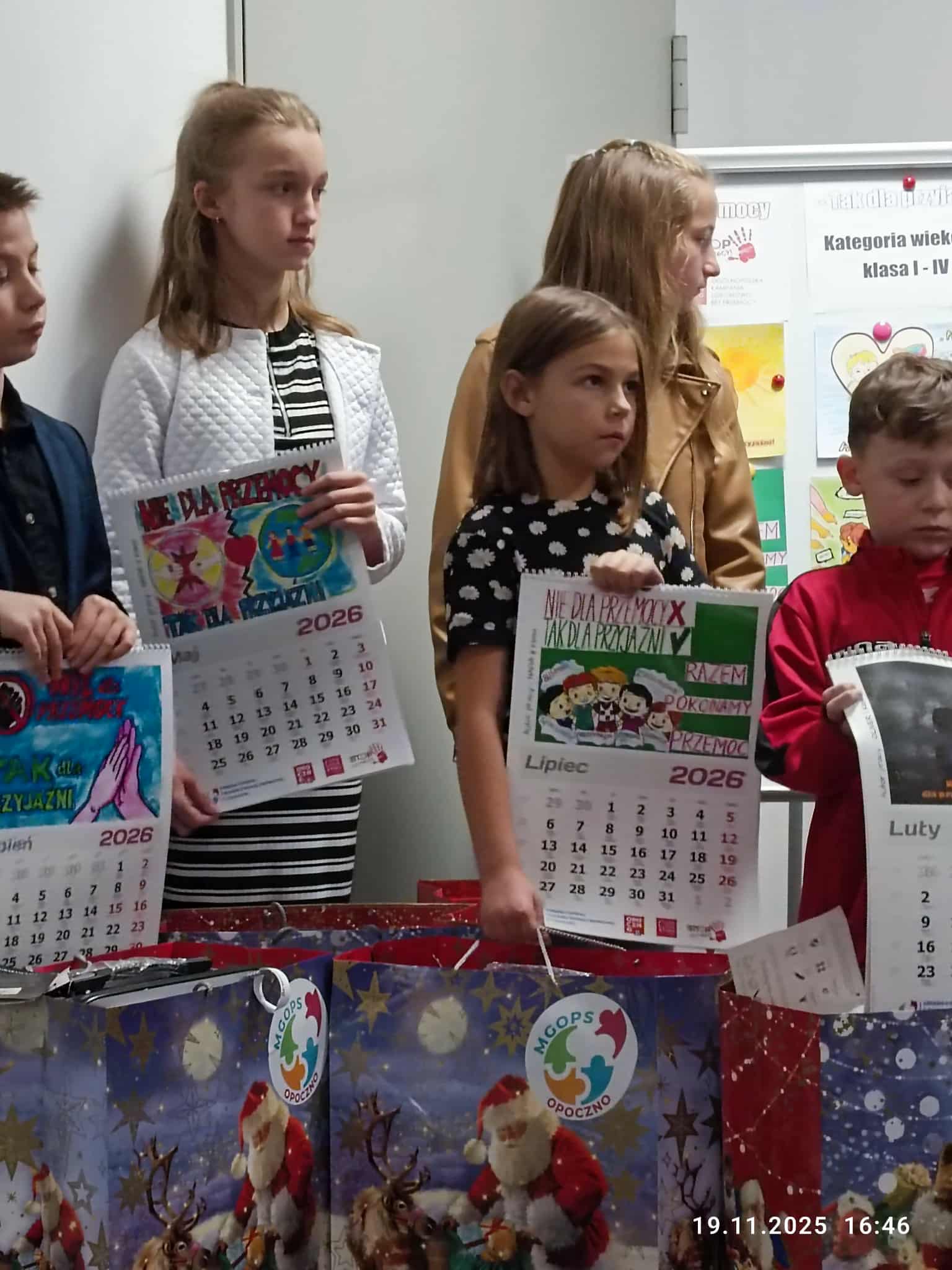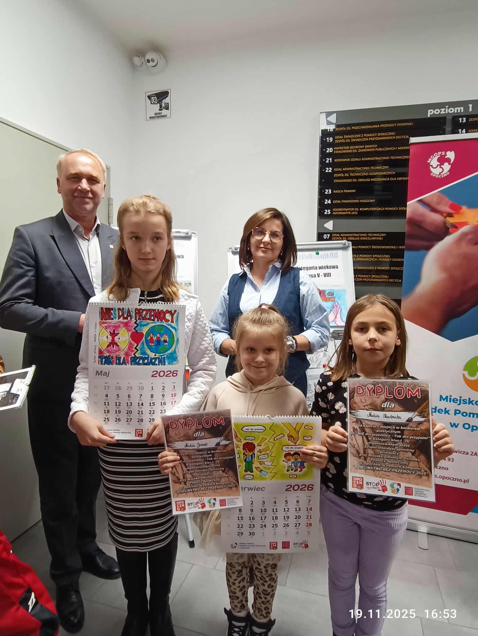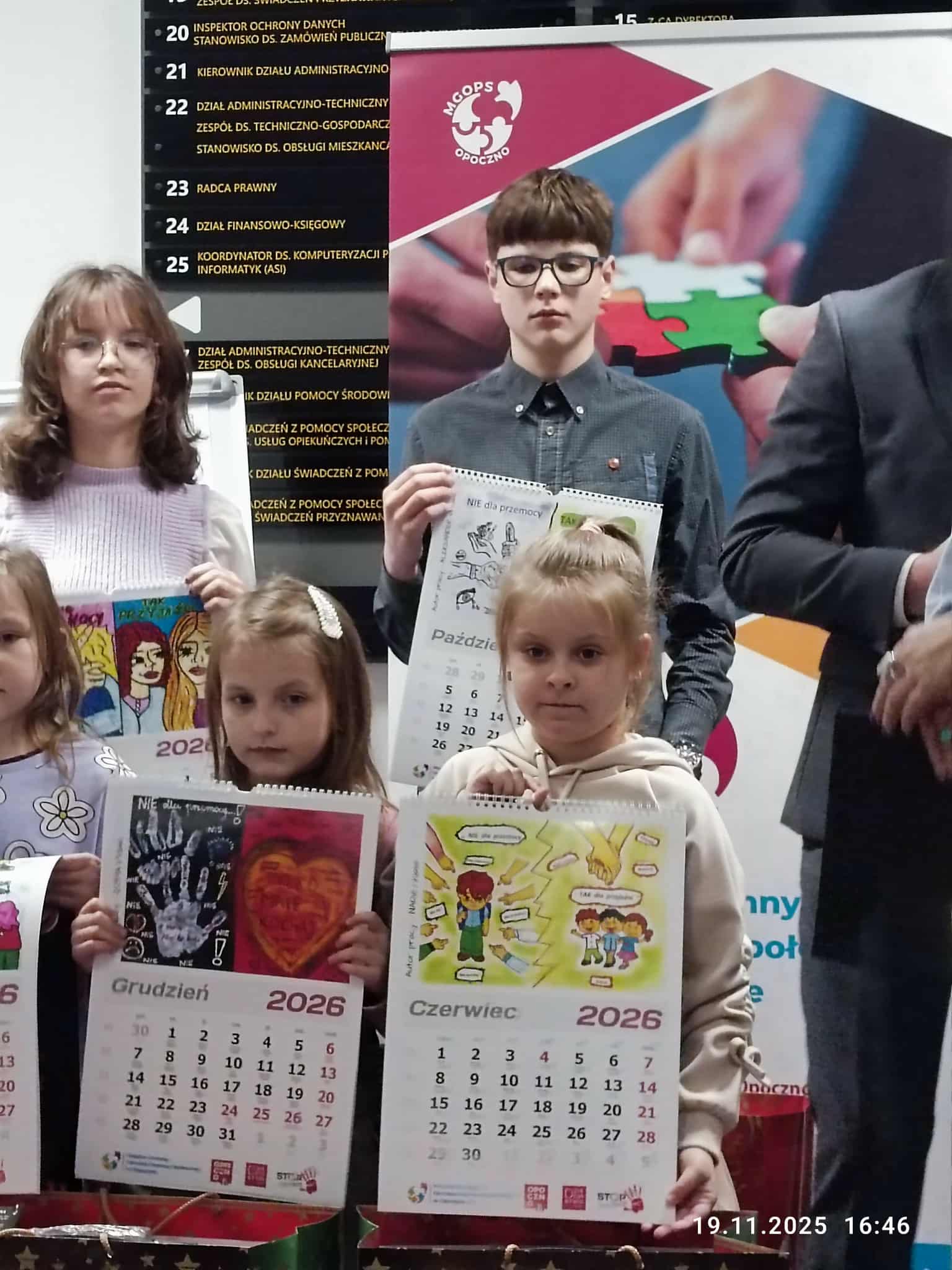 Zespół Interdyscyplinarny działający przy Miejsko-Gminnym Ośrodku Pomocy Społecznej w Opocznie był organizatorem profilaktycznego konkursu plastycznego pod hasłem „NIE dla przemocy - TAK dla przyjaźni" w ramach kampanii „Dzieciństwo bez przemocy". Patronat honorowy nad konkursem objęła Gmina Opoczno. Celem konkursu było eliminowanie zachowań agresywnych i przemocy rówieśniczej. Do konkursu zgłoszono ponad dwieście prac, z których wybrano i nagrodzono dwanaście. Stały się one oficjalnymi grafikami prezentowanymi w specjalnie wydanym na tę okazję kalendarzu na rok 2026. Wśród dwunastu prac trzy wykonały uczennice za Szkoły Podstawowej nr 3 im. H. Sienkiewicza w Opocznie.