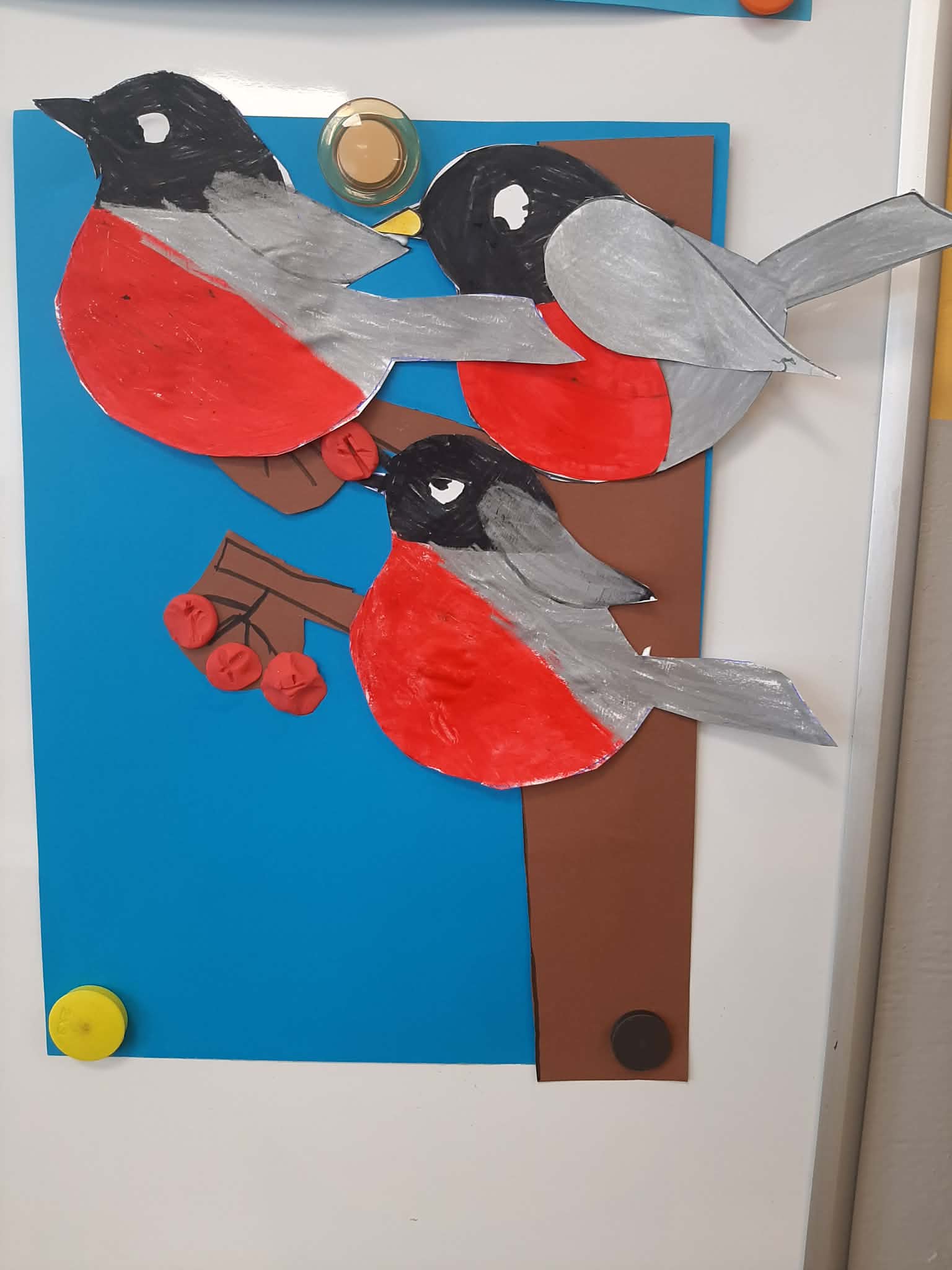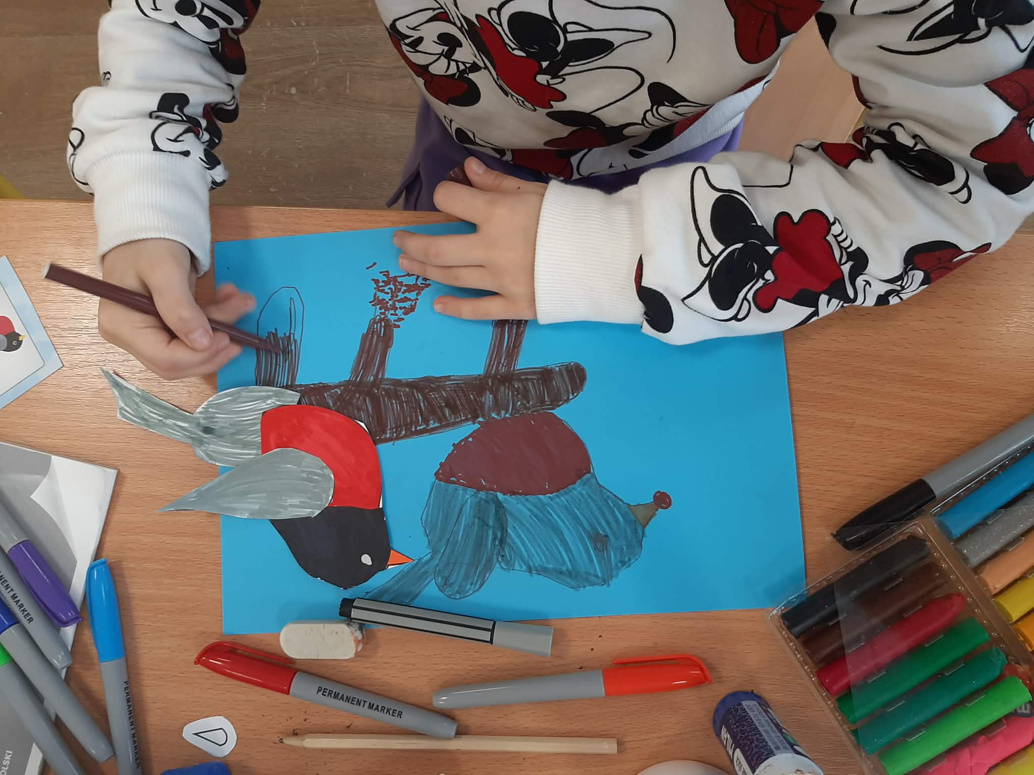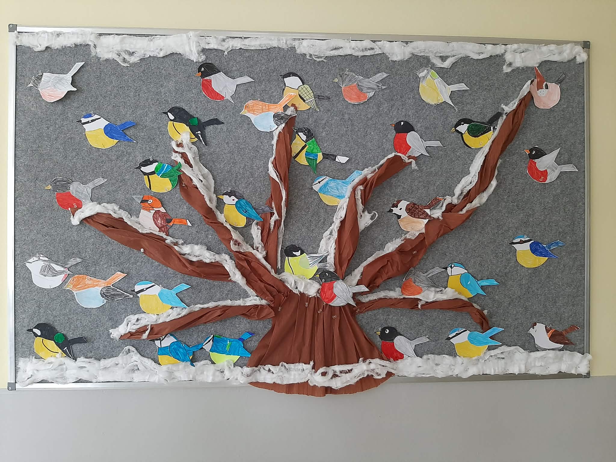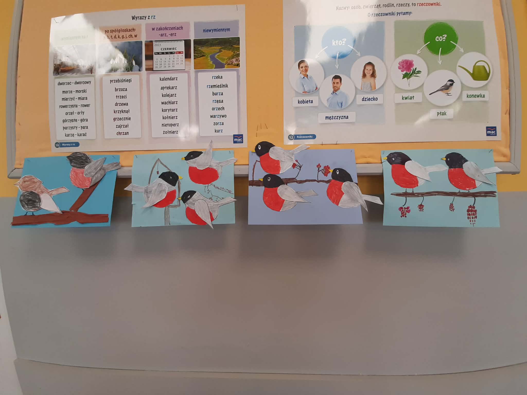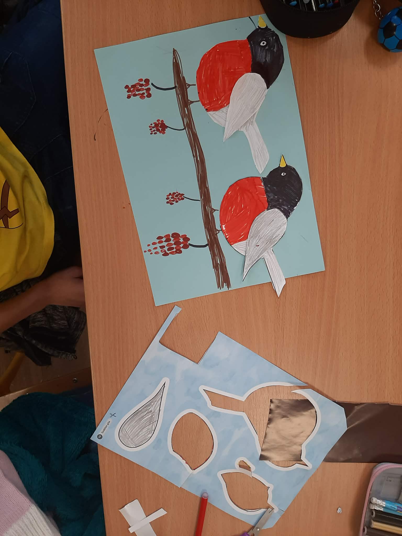 Zimowa aura dopisuje jak i inspiruje uczniów do wykonywania ciekawych prac plastycznych. Po omówieniu bloku tematycznego związanego z BEZPIECZNYMI FERIAMI dzieci wspólnie wykonały plakat.